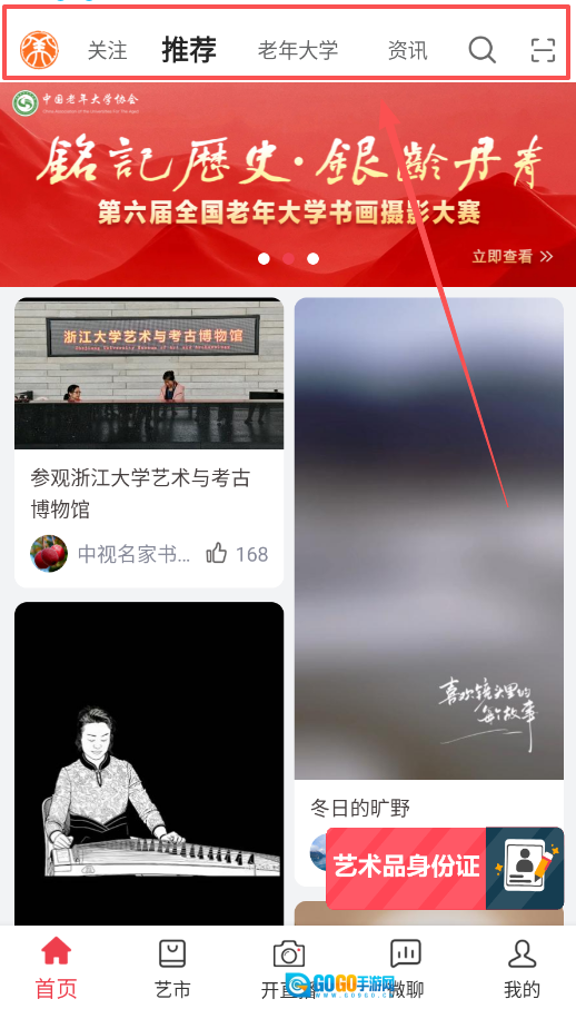 首页的内容十分丰富,设有关注、推荐、老年大学、资讯等多个板块,只需轻轻滑动屏幕,就能找到许多有趣的内容。