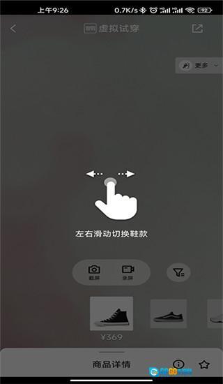 3、开启虚拟试穿功能后,向左滑动列表,挑选一双想要试穿的鞋子。