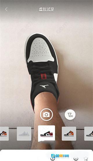 4、选好球鞋后,把脚放进画面里,就能试穿这双球鞋了。