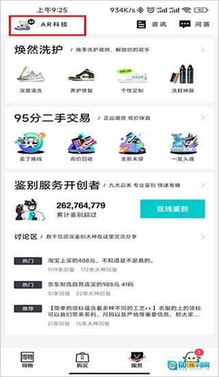 2、打开服务界面,然后点击右上角的“AR科技”;
