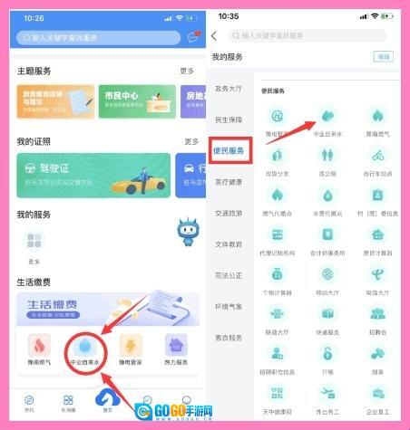 打开“咱的驻马店”首页后,可通过两种方式找到中业自来水缴费入口:一是直接在首页的【生活缴费】专区点击【中业自来水】;二是点击首页的【更多】选项,进入后在【便民服务】模块中找到并点击【中业自来水】。