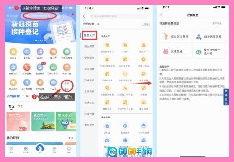 你可以这样操作:先打开“咱的驻马店”首页,通过关键字搜索“社保缴费”;或者点击“更多服务”,在【政务大厅】模块里找到并点击“社保缴费”。进入社保费缴费种类界面后,选择你对应的缴费类型即可。