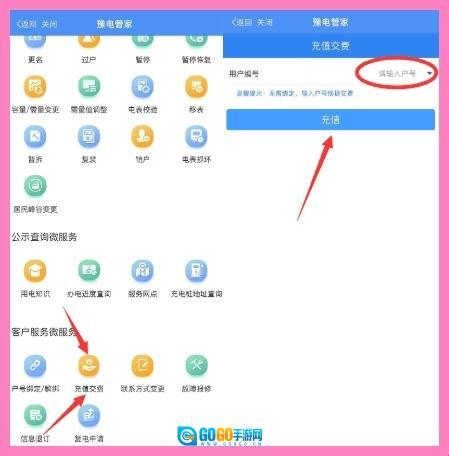 打开【豫电管家】无需绑定,输入户号直接缴费充值