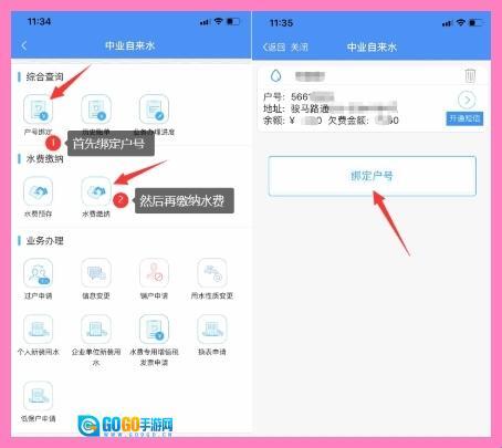打开【中业自来水】绑定户号后再进行缴费