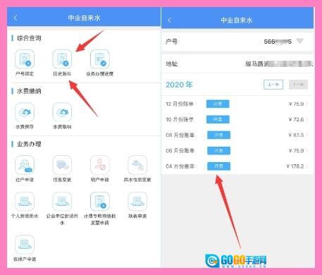 缴费成功后可点击“历史账单”开具电子发票