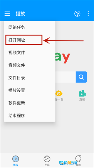 4、接下来在弹出的选项卡中点击“打开网址”,就能进入我们上次搜索影片时的地址页面了。