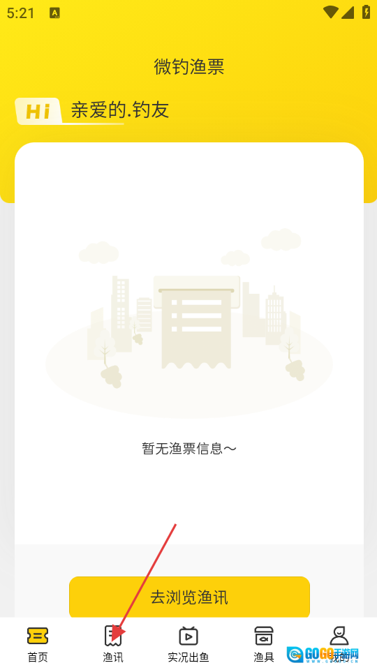 1、点击底部导航栏的【渔讯】按钮,进入渔讯板块查看渔票信息。
