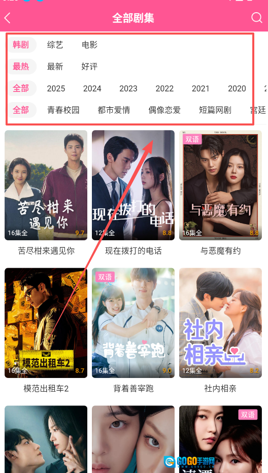 在“全部剧集”页面,您能够借助“韩剧”“电影”这类类型标签完成初步筛选,之后再运用“最热”“最新”或者年份选项开展精准筛选。