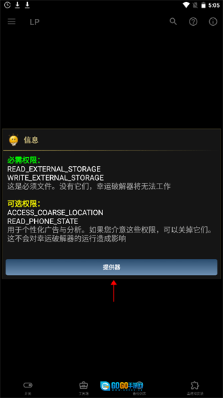 第一步:打开后,页面会弹出一条信息,点击“提供器”即可。