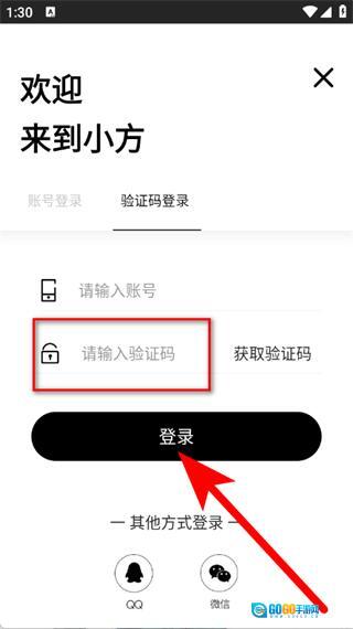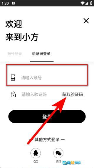 3、进入登录页面后,选择验证码登录方式,输入对应的手机号,随后点击“获取验证码”按钮。