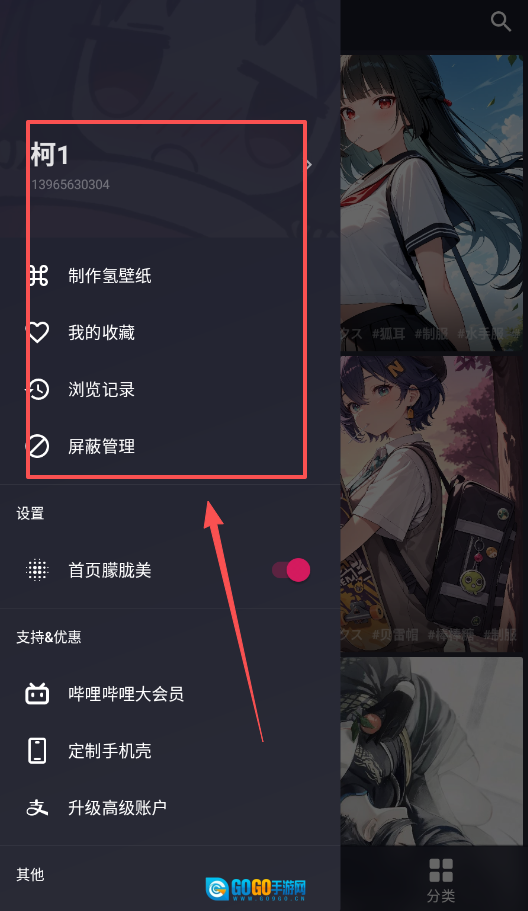 4、软件还提供“哔哩哔哩大会员”权益支持以及“定制手机壳”等福利优惠,通过“其他”选项可以探索更多实用功能,让壁纸的使用体验更加丰富多元。