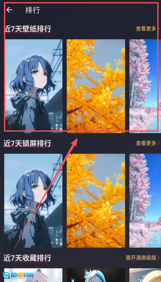 在“排行”页面中,能够查看“近7天壁纸排行”“近7天锁屏排行”以及“近7天收藏排行”,这些内容是很好的参考依据。