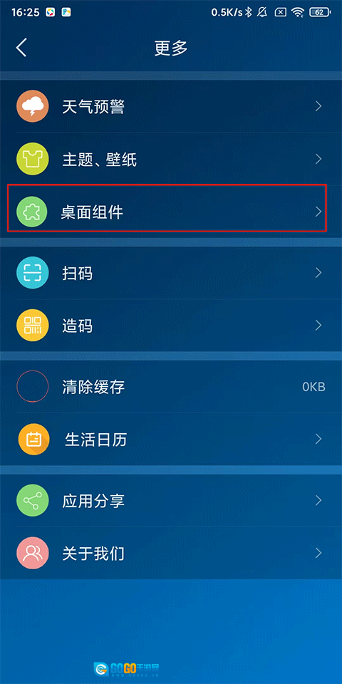 2、在更多页面中点击桌面组件;