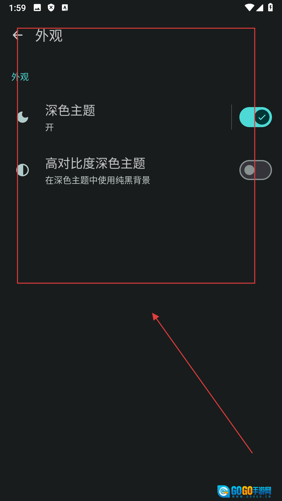 4、开启深色主题后,界面会切换为深色模式,这样就完成了外观设置操作。