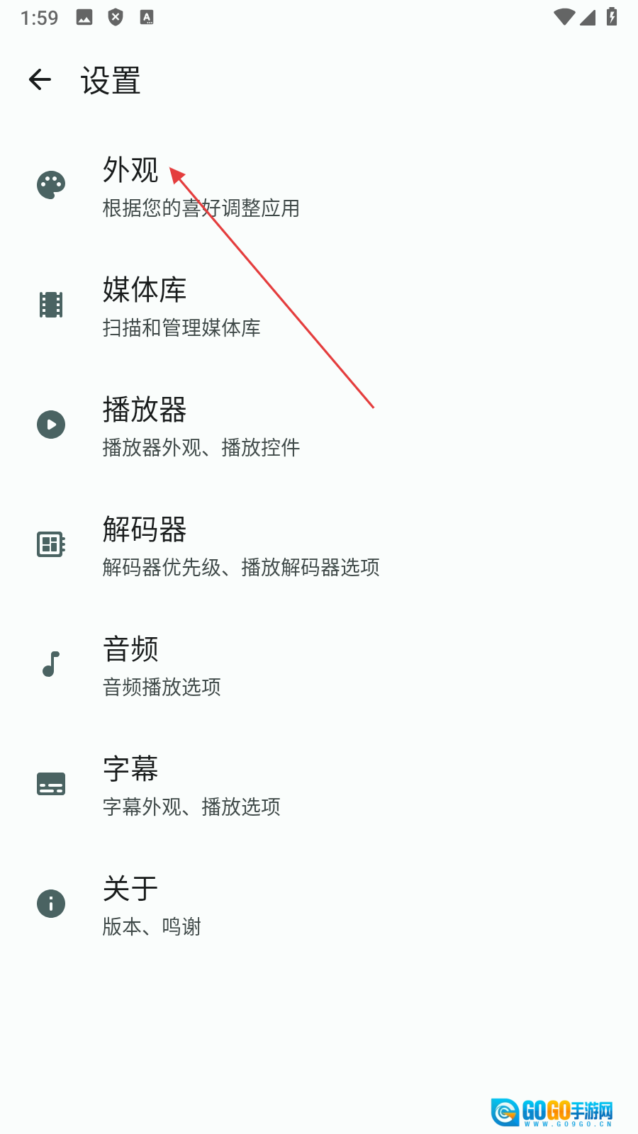 2、在设置页面,点击【外观】,进入外观设置页面。