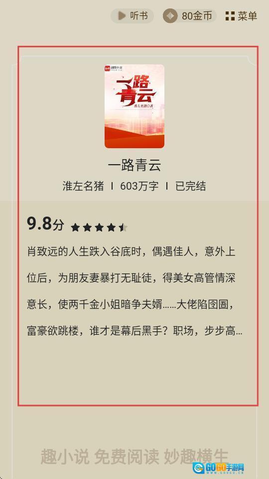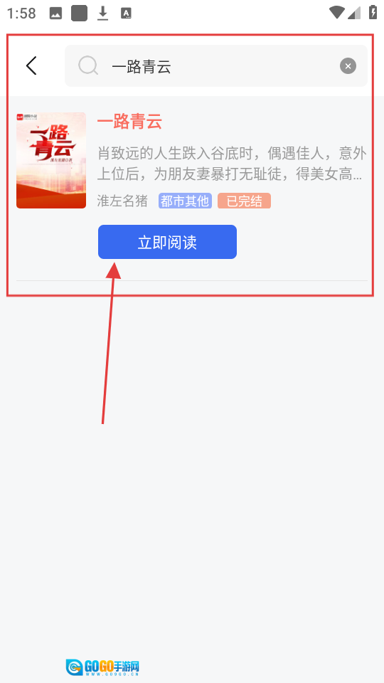 3、找到《一路青云》这本小说后,点击【立即阅读】按钮,就可以开启阅读之旅了。