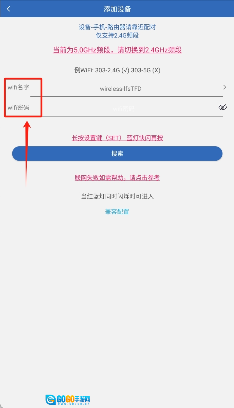 3、大家可以根据自身的实际需求来做选择,我在这里以wifi为例进行说明,输入自己的wifi名称和密码后,点击搜索按钮就能正常使用了。