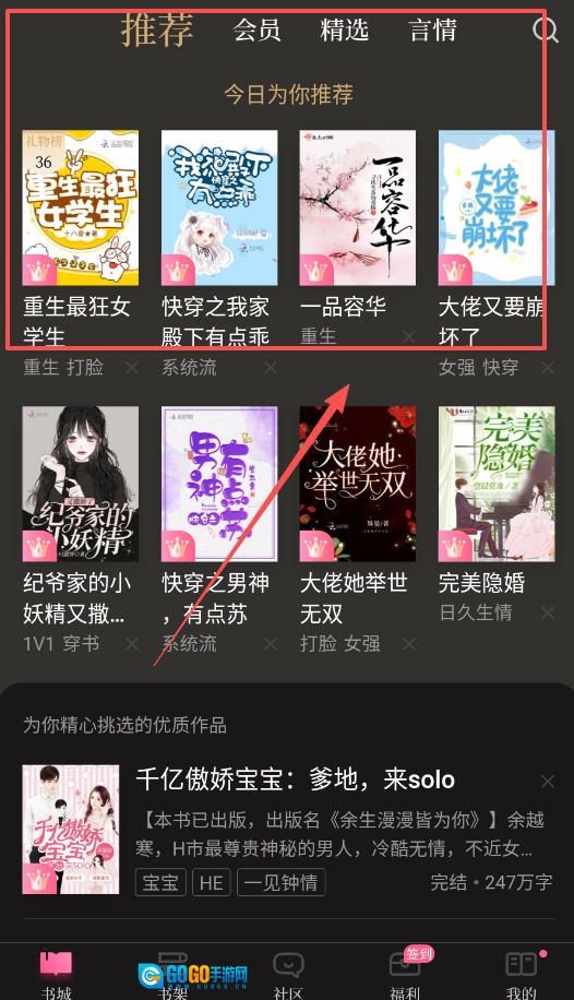 首页推荐相当于你的专属个性化书库,它会依据你的阅读偏好,为你推荐像《大佬又要崩坏了》这类契合你口味的作品,帮你快速找到钟爱的故事。