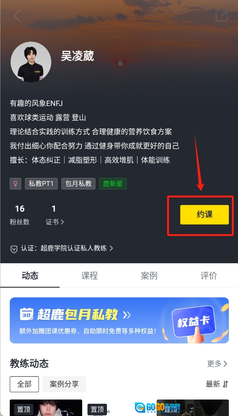 3、最后进入私教教练的介绍界面,在这个界面中点击约课选项就能完成预约了。