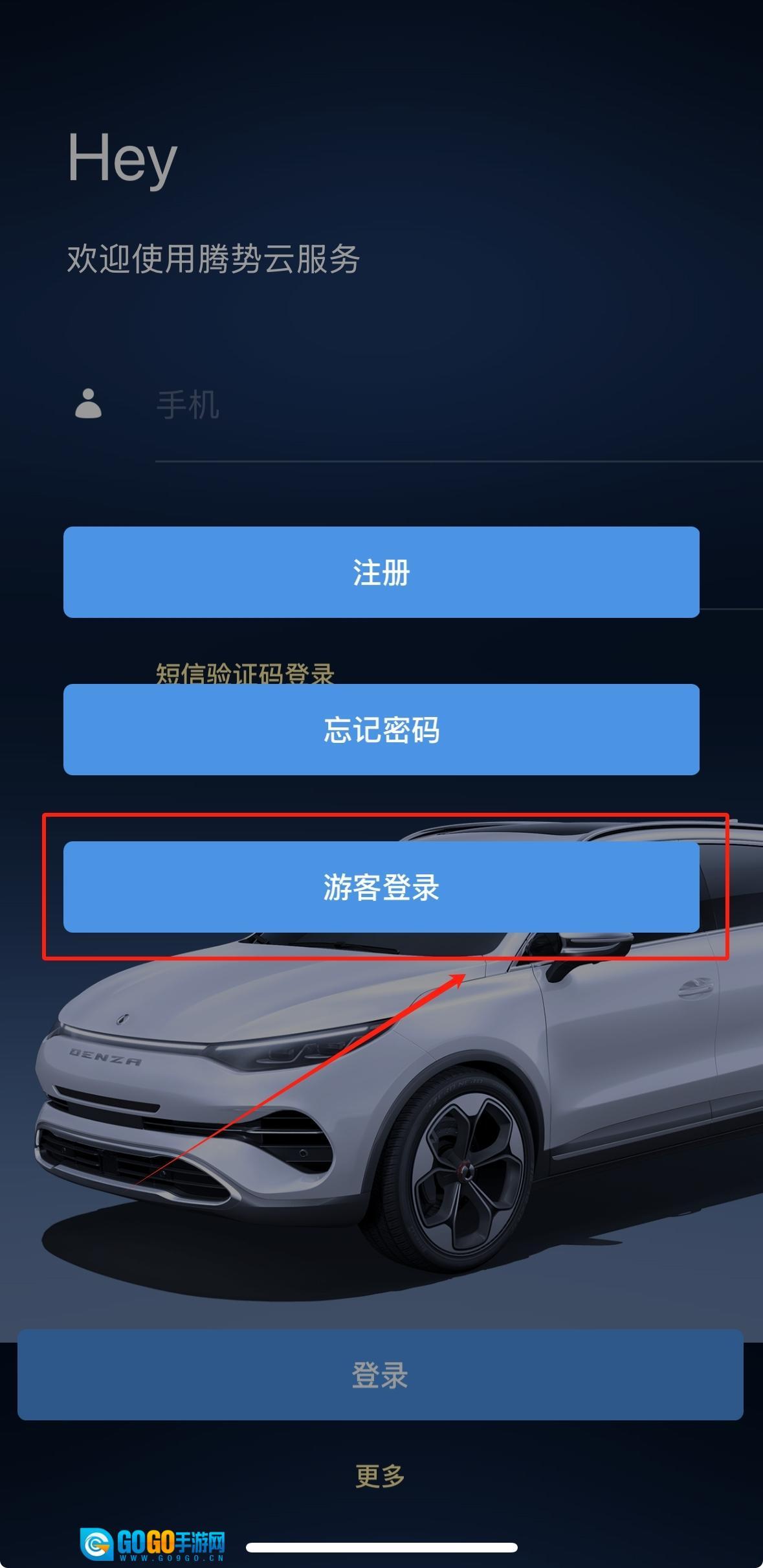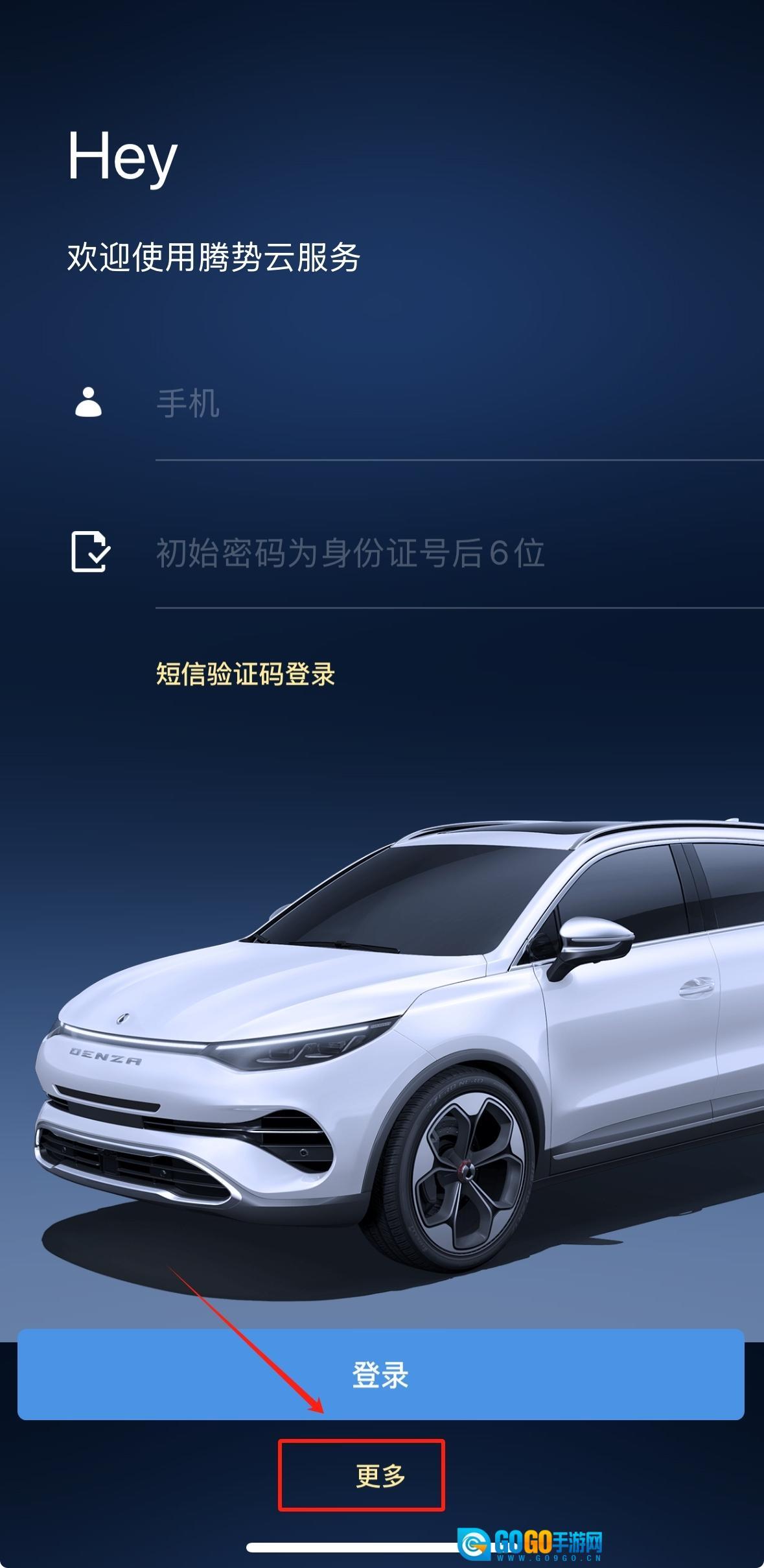 1、打卡腾势智能互联,在登录页面,点击更多。