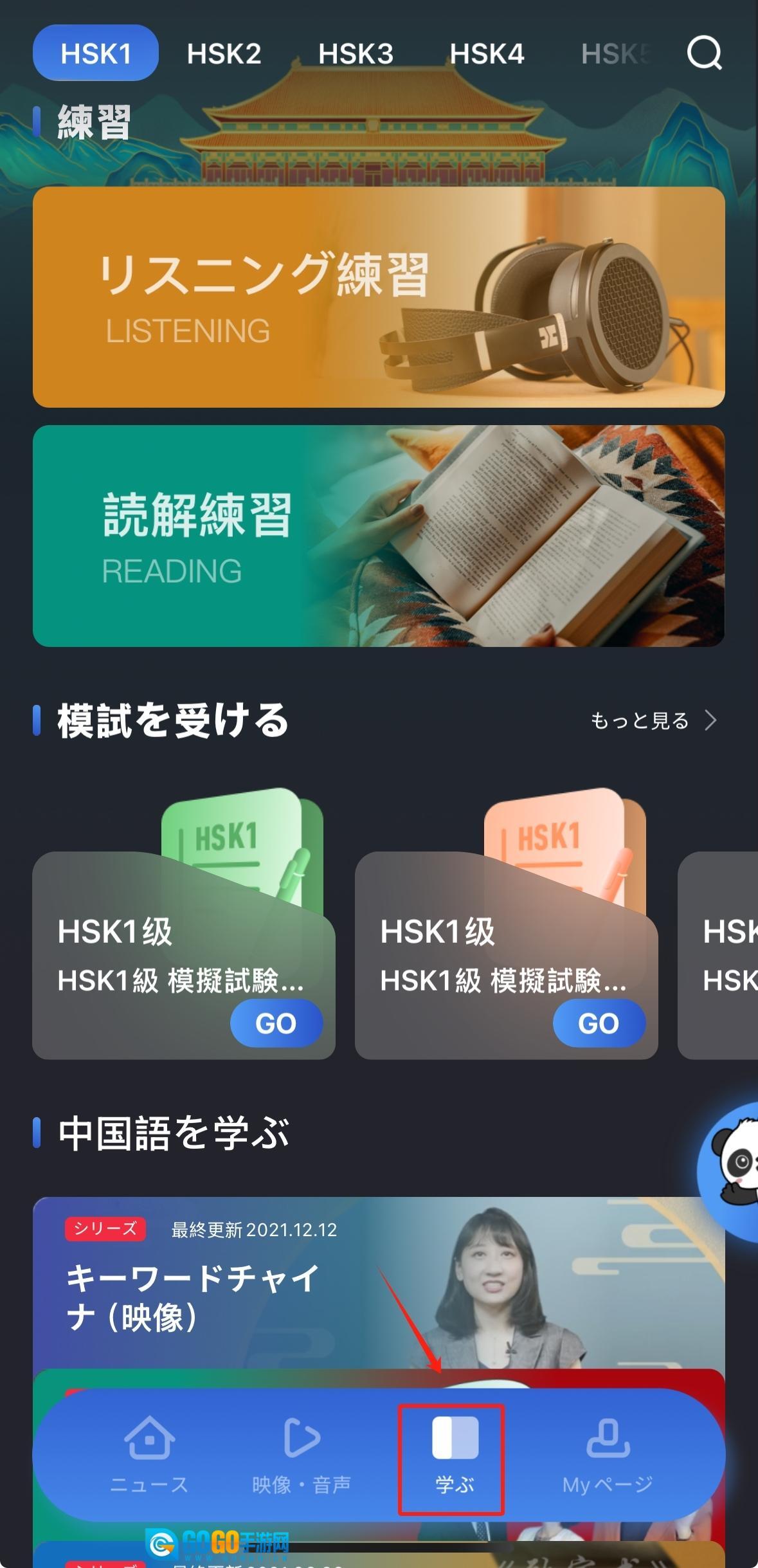 1、先打开KANKAN日语进入主页,切换到第三个模块,这里有HSK的听力练习和阅读练习。