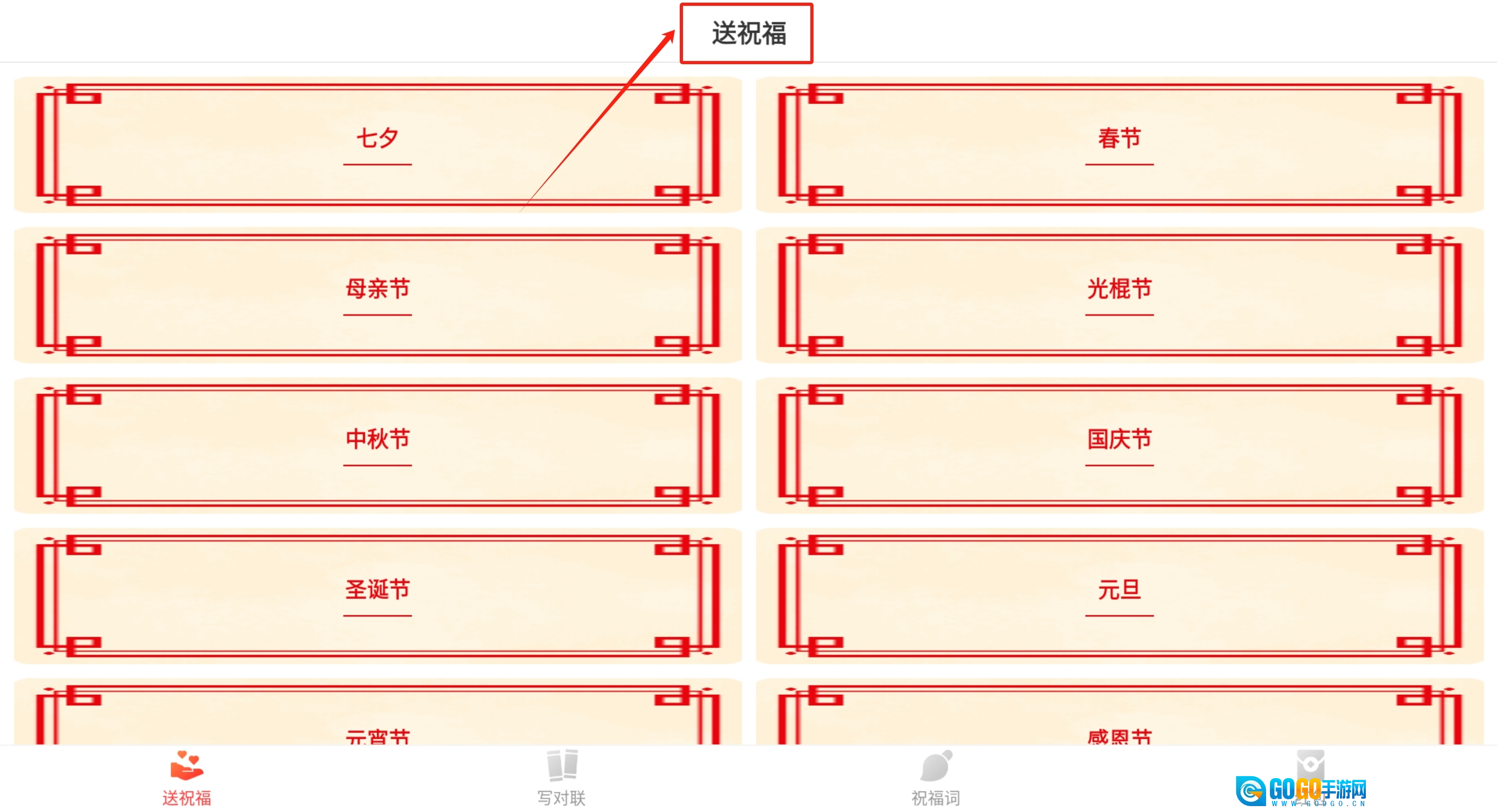 在本站完成软件的安装与打开操作后,就能看到包含各大节假日的祝福语内容。