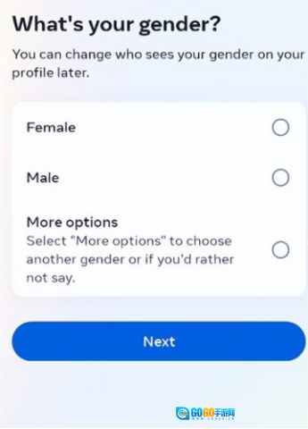 5、填写性别后,点击“Next”进入下一步。