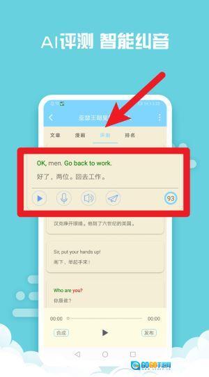 4、AI语音评测功能可让用户进行跟读练习,还能智能评分并纠正发音,助力用户改善发音、提高口语能力。