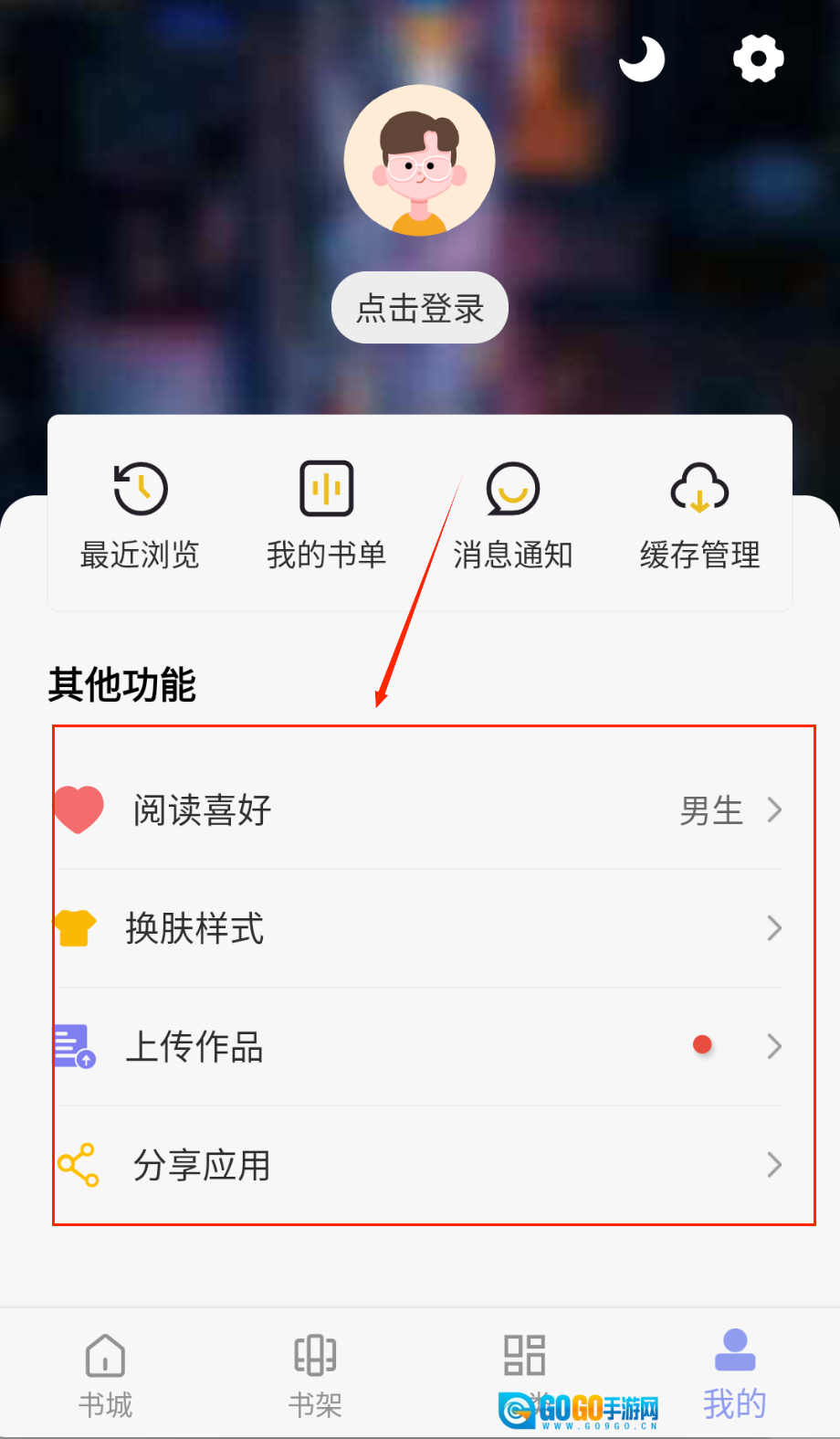 4、个人中心具备账号信息与阅读设置的管理功能,在“我的”页面中,用户可以查看自己的阅读历史,对昵称和头像进行修改,此外还能够清理缓存,从而释放手机存储空间。