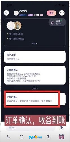 5、点击【完成陪伴】后,只需等待对方确认订单,就能获取相应收益。
