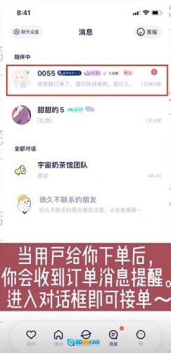 1、用户下单后,你会收到订单消息提醒,进入对话框就能接单。