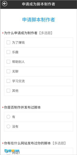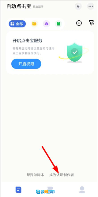 1、打开自动点击宝应用,该应用包含主页、使用教程、我的等功能版块,接着点击页面下方的“成为认证制作者”选项。