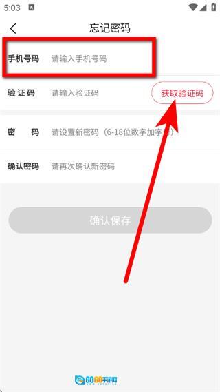 5、进入忘记密码页面后,输入手机号码,接着点击获取验证码按钮。