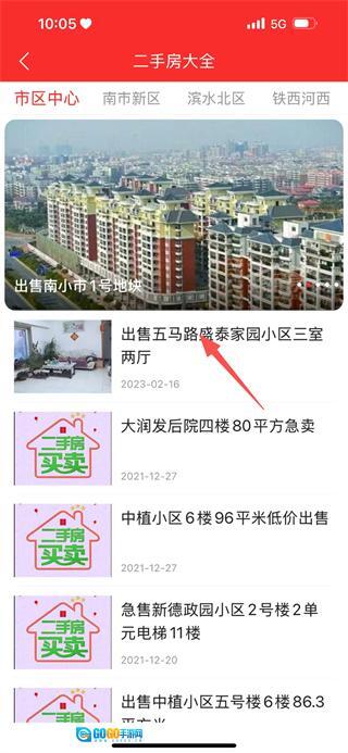 3、随后可点击出售五马路盛泰家园小区三室两厅条目,进入详情页面。