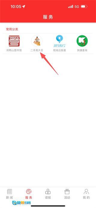 2、在服务页面,点击二手房大全的选项,进入二手房大全页面。