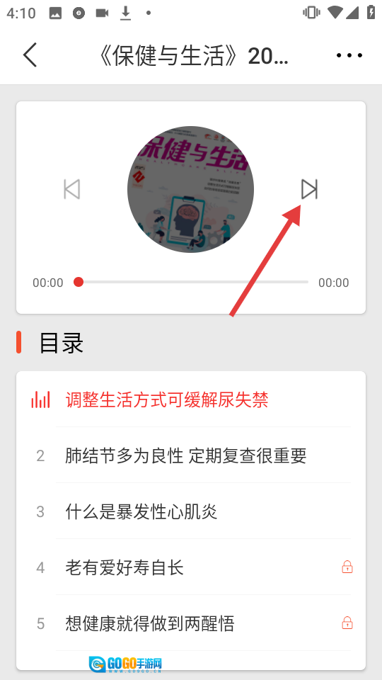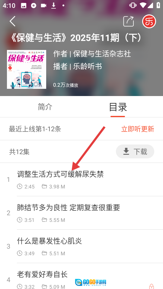 3、在《保健与生活》2025年11期(下)的目录里,挑选“调整生活方式可缓解尿失禁”这个音频集。