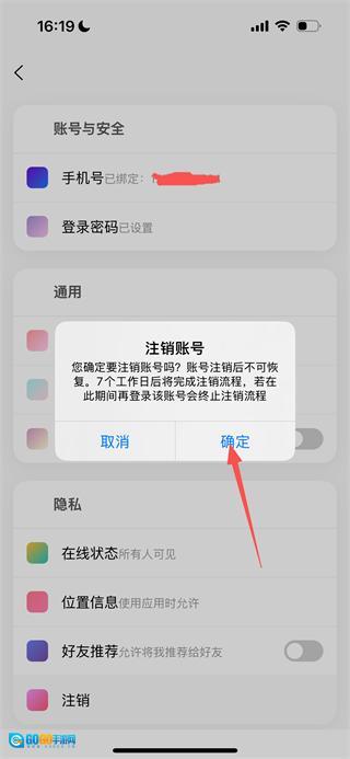 4、在注销弹窗里,点击确定按钮,就能完成账号注销操作。