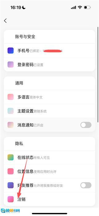 3、进入设置页面后,找到并点击注销选项,系统会弹出确认注销账号的弹窗。