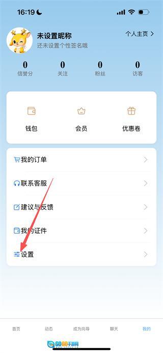 在个人中心页面,点击设置选项,就能进入设置页面。
