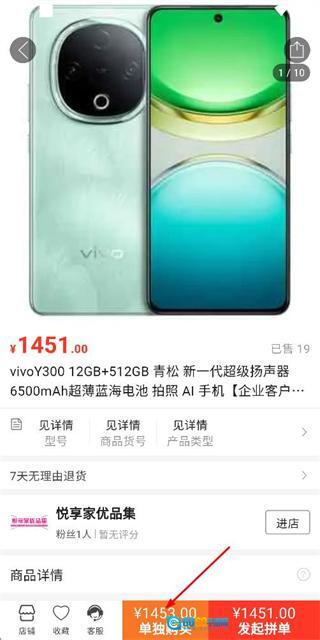 3、在商品详情页面点击底部的单独购买按钮,即可完成该商品的购买流程。