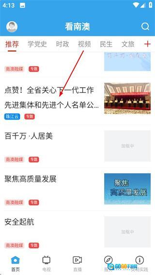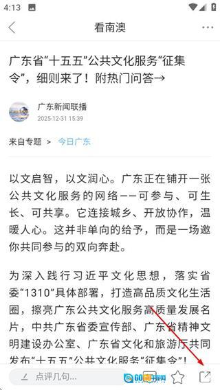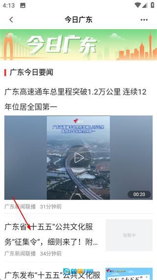 1、进入首页后,点击目标新闻,可进入今日广东专题页面。