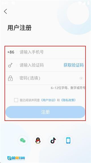 4、在注册页面,填写信息并勾选协议后,点击注册按钮即可完成账号注册。