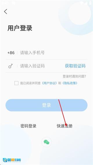 3、在登录页面,点击快速注册选项,可进入用户注册页面。