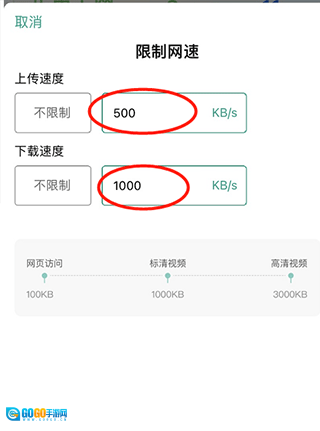 4、点击自定义选项,对上传速度和下载速度进行配置,最后点击【确定】按钮就可以了。