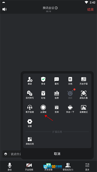 首先需确保主持人已开启云录制视频功能,随后进入会议界面并选择“更多”选项,接着在弹出的选项菜单里点击云录制按钮。