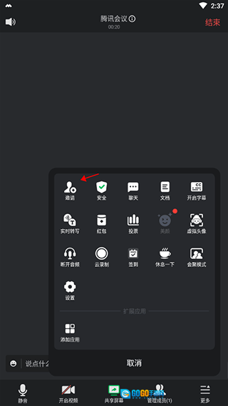 5、打开上拉菜单后,找到“邀请”选项并点击,即可展开邀请界面。