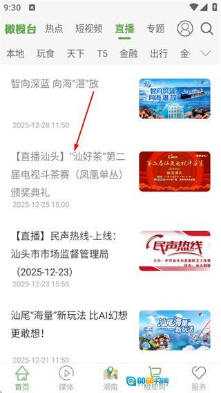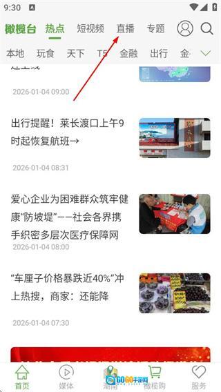 1、进入首页后,点击顶部的直播选项,可进入直播页面。