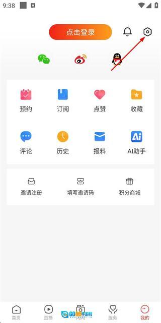 2、进入个人中心页面后,点击右上角的设置图标,即可进入设置页面。