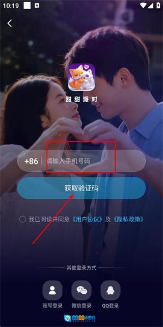 2、在手机号登录页面填写手机号,勾选协议后,点击获取验证码。