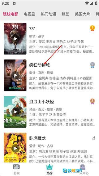 2、进入热榜页面后,找到“疯狂动物城”相关内容并点击,即可进入该内容的播放页面。